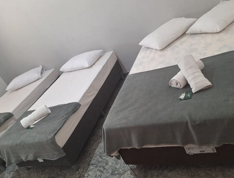 Quartos com ar-condicionado, Wi-Fi grátis e banheiro privativo para sua comodidade.